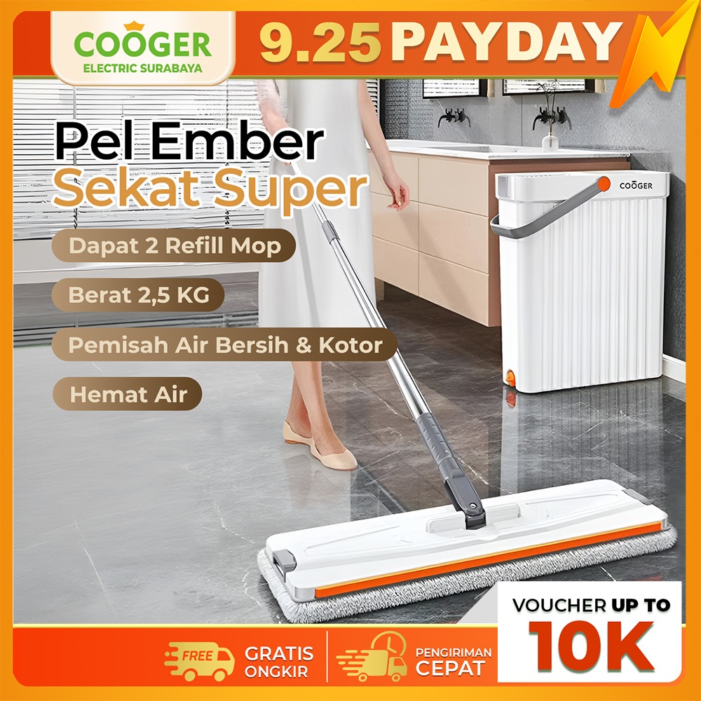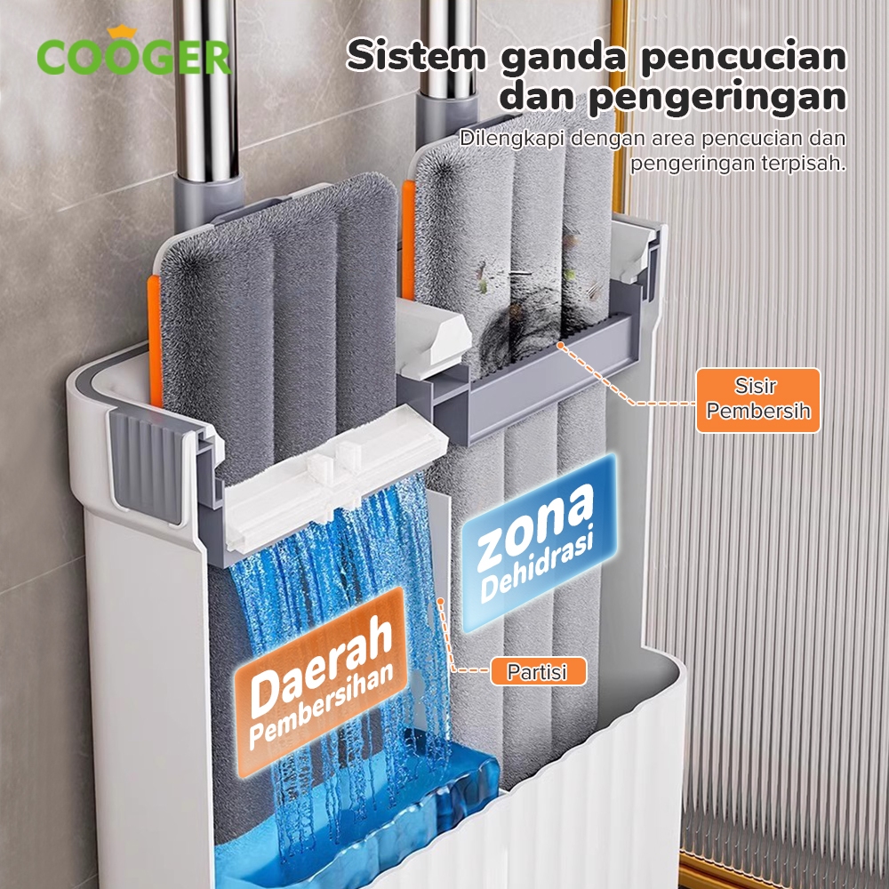 COOGER Alat Pel Lantai Dual Bucket Dengan Ember Pemisah Mop Alat Pel Lantai Dengan Sekat Untuk Mencuci Dan Membersihkan