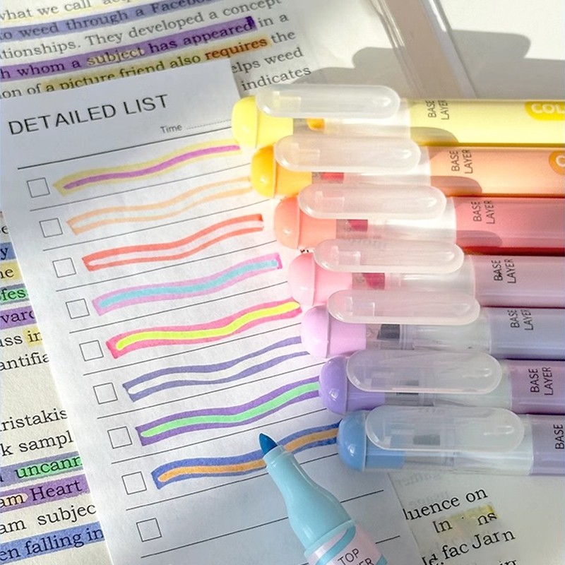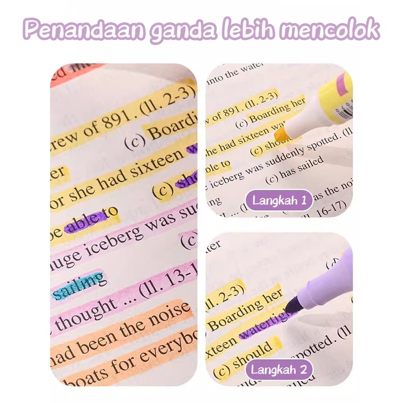 Paus Biru - Stabilo Pastel 1 Set Layer Highlighter 2 Sisi 6 PCS 12 Warna Pastel Lucu