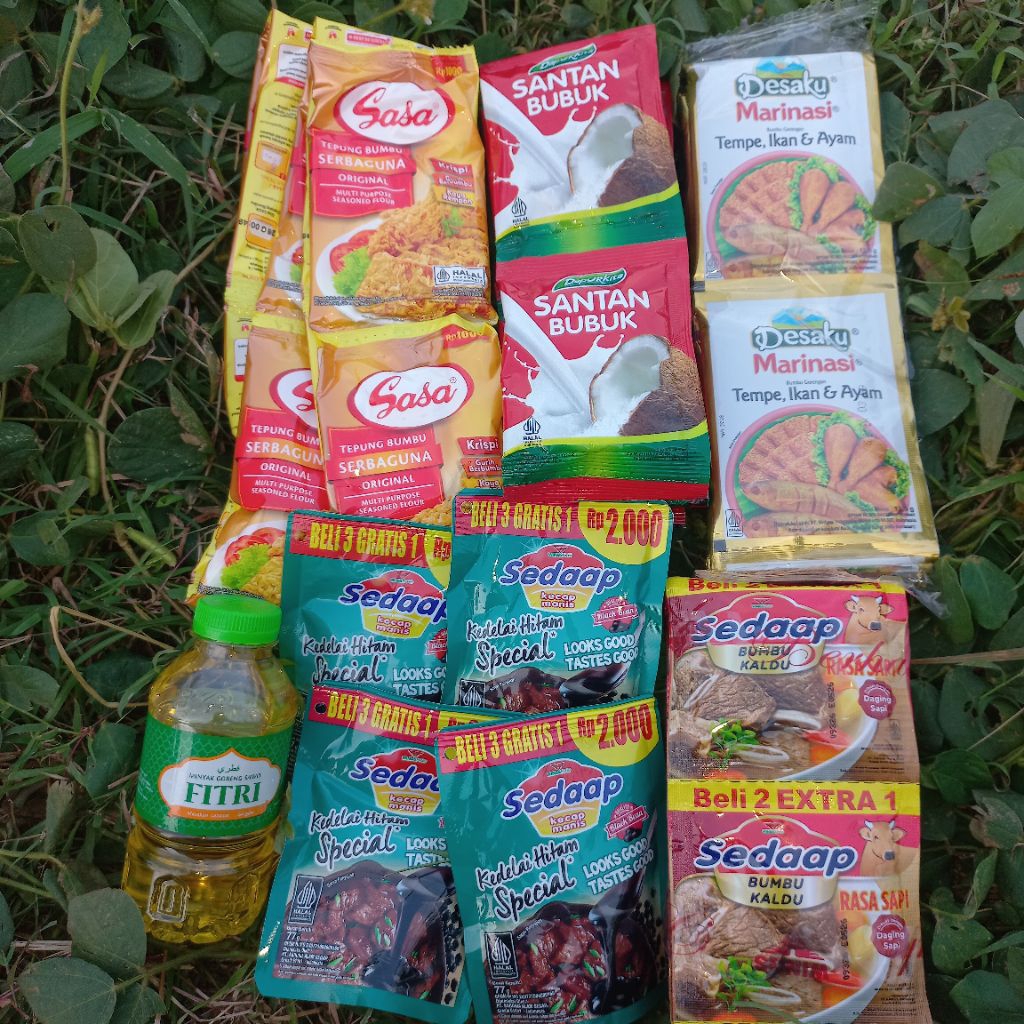 PAKET DAPUR LENGKAP 10 PCS TEPUNG SASA + 10 PCS SANTAN BUBUK + 12 PCS BUMBU MARINASI + 18 PCS BUMBU KALDU SEDAAP + 4 PC