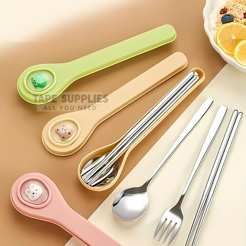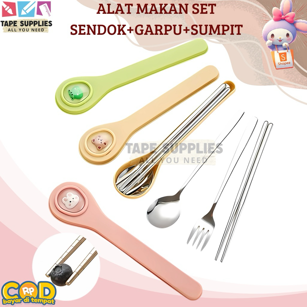 SET SENDOK MAKAN / Alat Makan Stainless Steel / Set Alat Makan Sendok+Garpu+Sumpit / Peralatan Makan