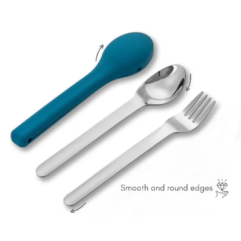 Alat Makan Travel Portable Sendok Garpu Set Stainless Steel with Silicone Case Cutlery Set