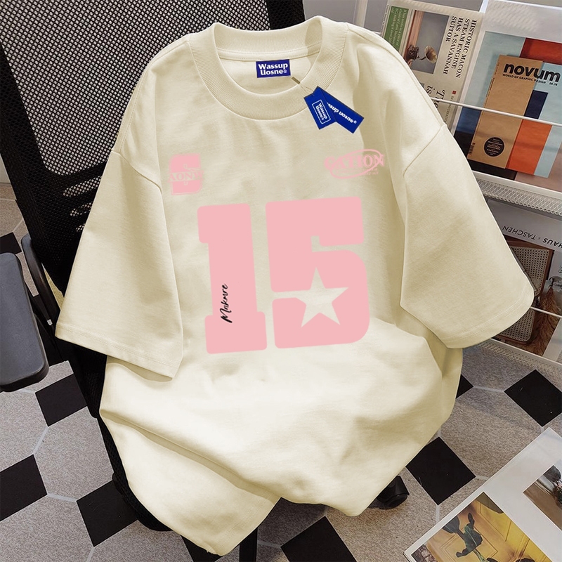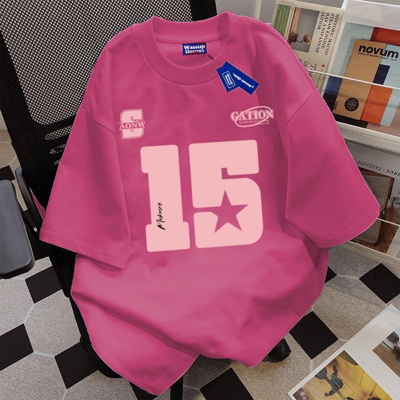 BOOMBAP American retro Style T-shirt Oversize Pink letter 15 Print top| Kaos Wanita Putih | Kaos pria dan wanita | Street Style 100 PERSENCotton top 6.11