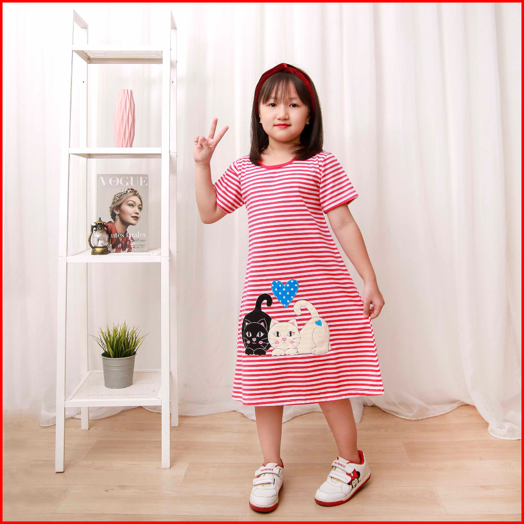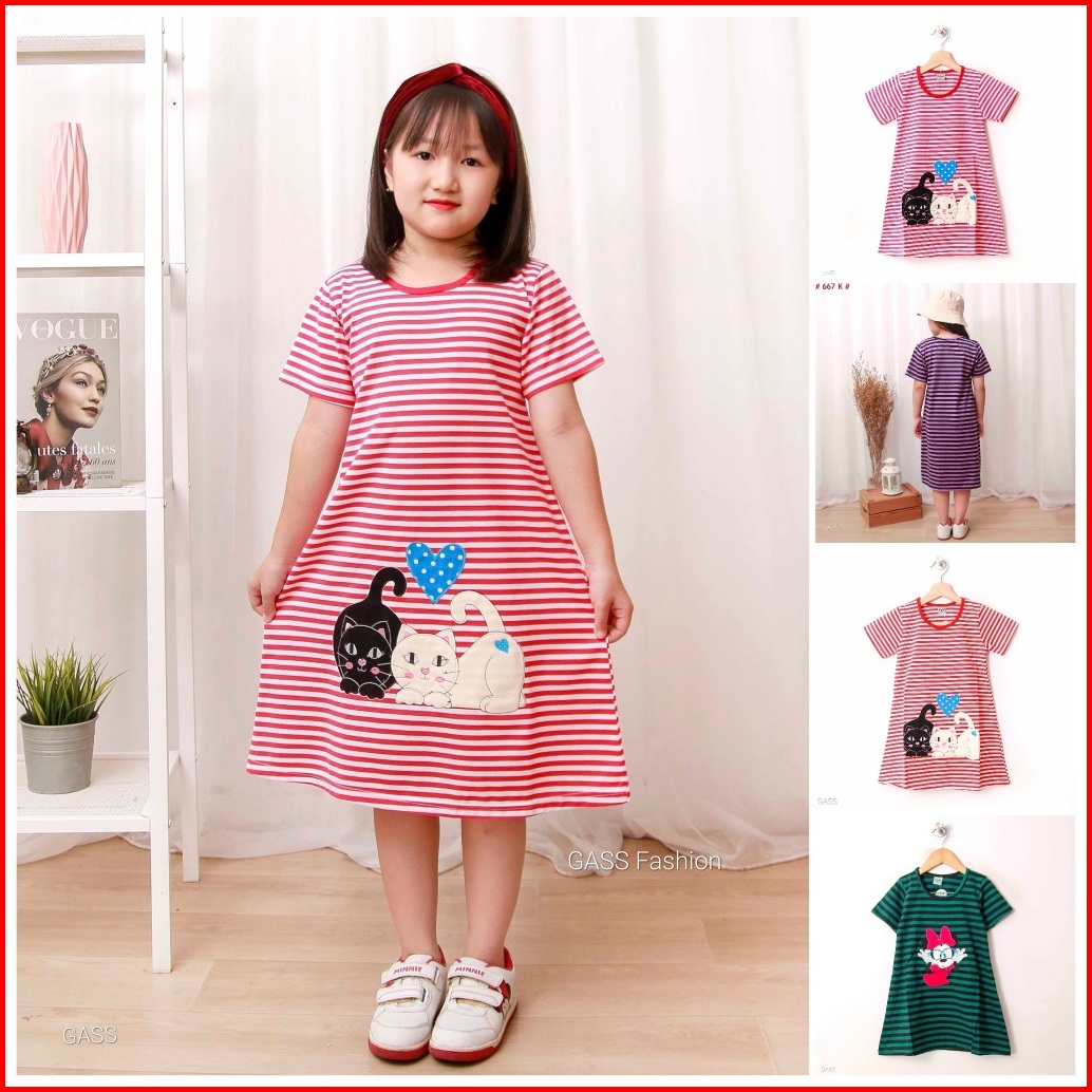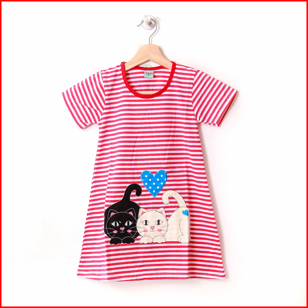 Baju Anak Perempuan Dress Daster Salur Anak Usia 1 2 3 4 5 6 7 8 Tahun Bordir Kucing
