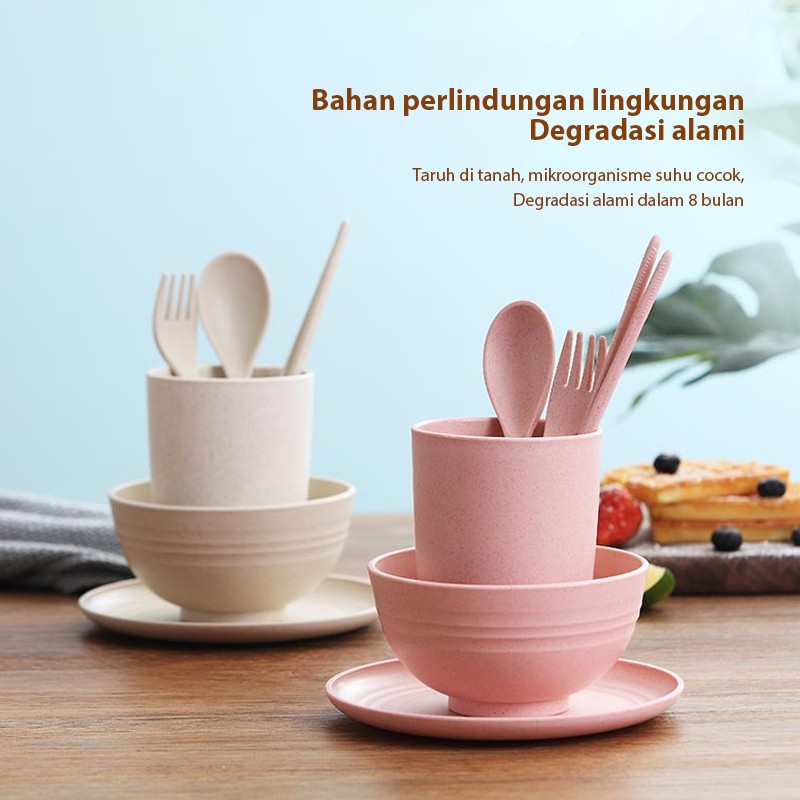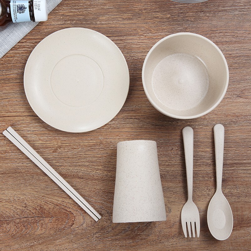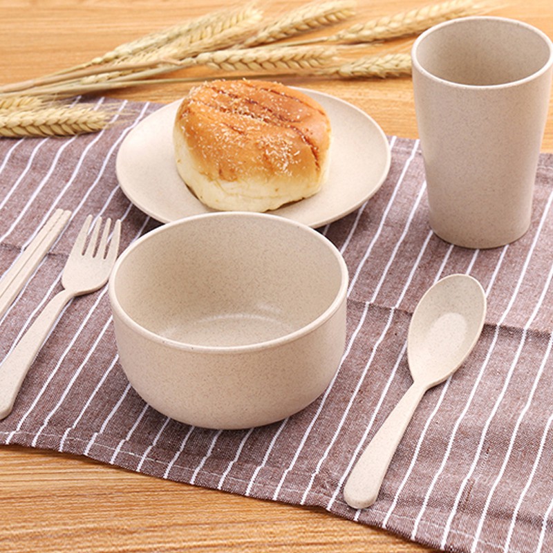 6pcs Peralatan makan portabel anak-anak sendok sumpit jerami gandum mangkuk dan cangkir VS-12