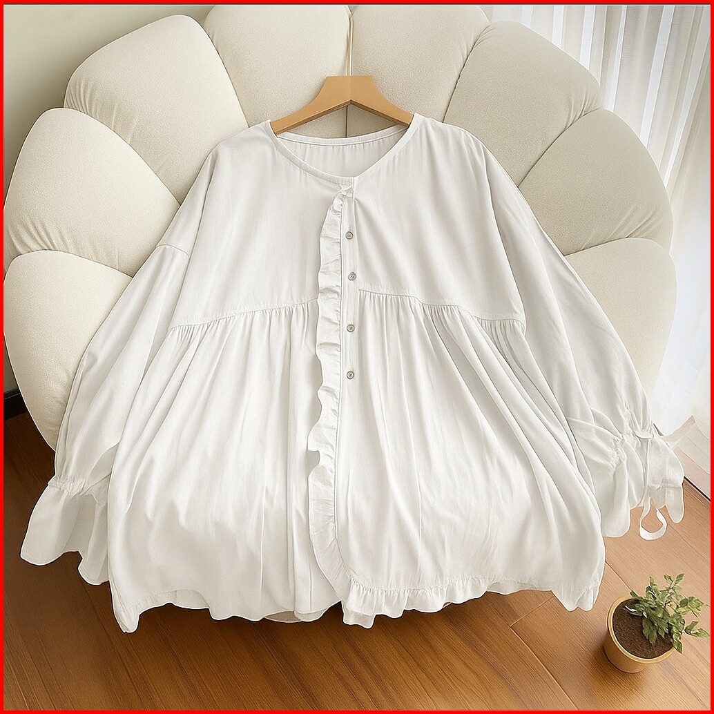 Vallina Outfit - Kalaya Blouse Atasan Wanita Oversize Jumbo Matt Polo Linen Premium Casual Daily