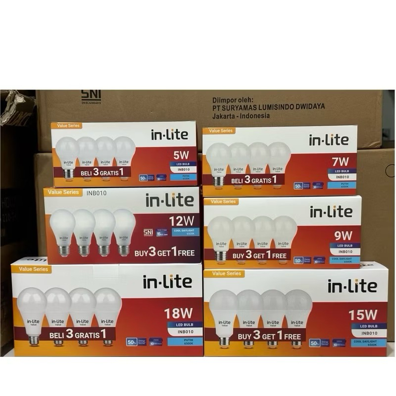Lampu Inlite Paket Value Series Beli 3 Gratis 1 Bohlam Led In-Lite Led Bulb Bohlam Led Murah 5W 7W 9W 12W 15W 18W Paket