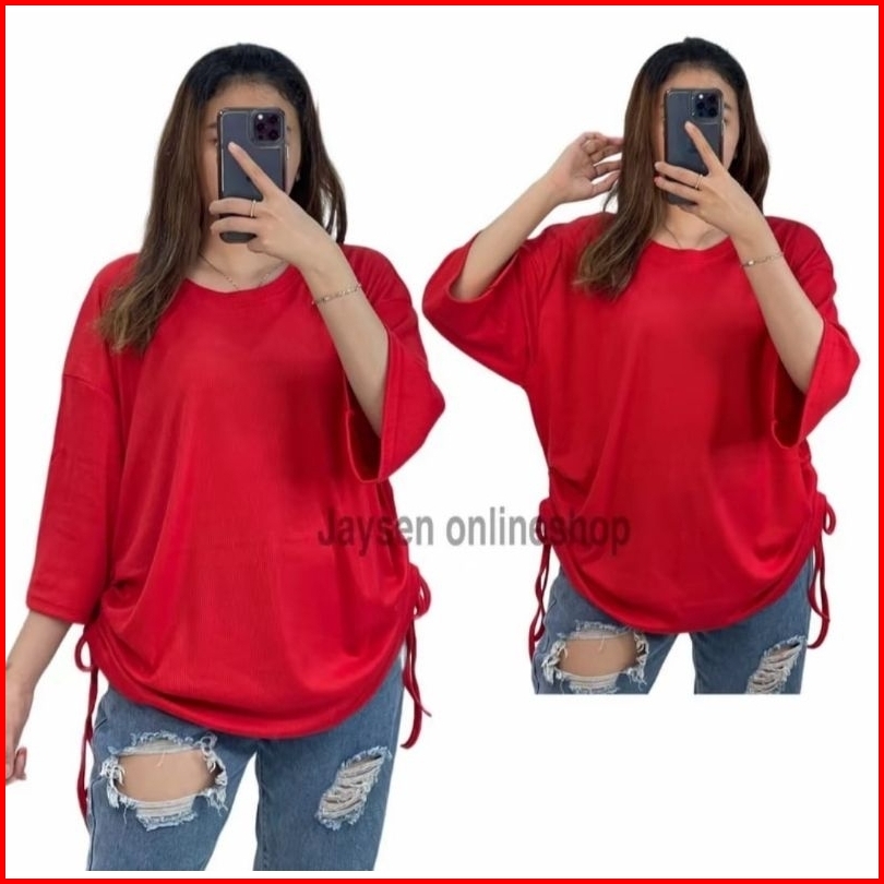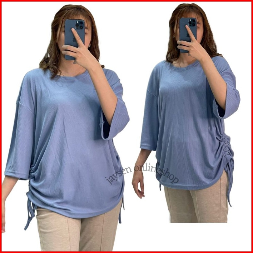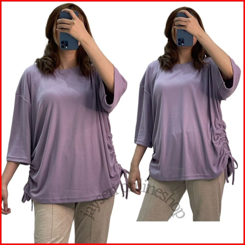 Jys- Atasan Kaos Serut Samping Kanan Kiri Kaos Knit Rib Top Oversize Baju Jumbo Kaos Bigsize