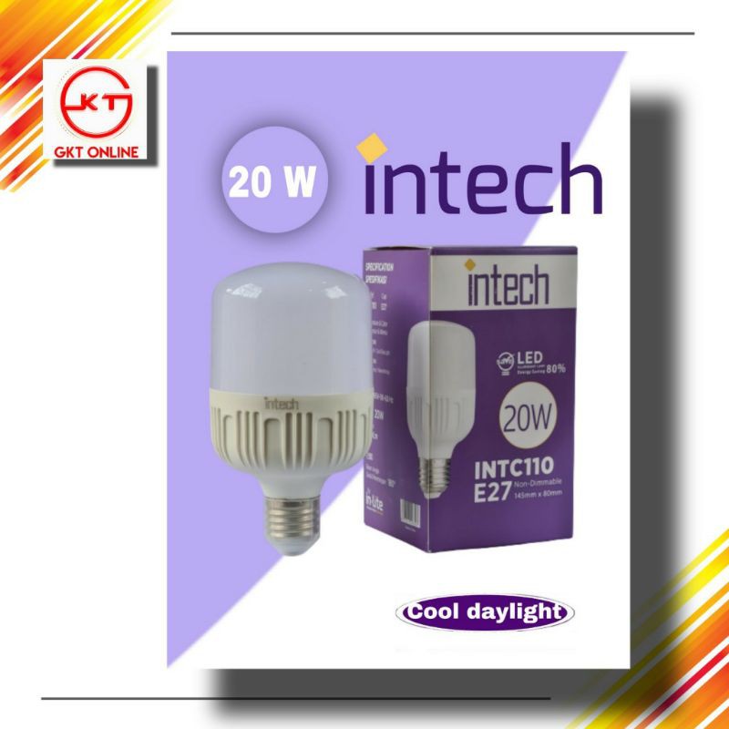 Lampu Led Bohlam Tabung Intech 20 Watt / Lampu Bohlam Led Cahaya Putih