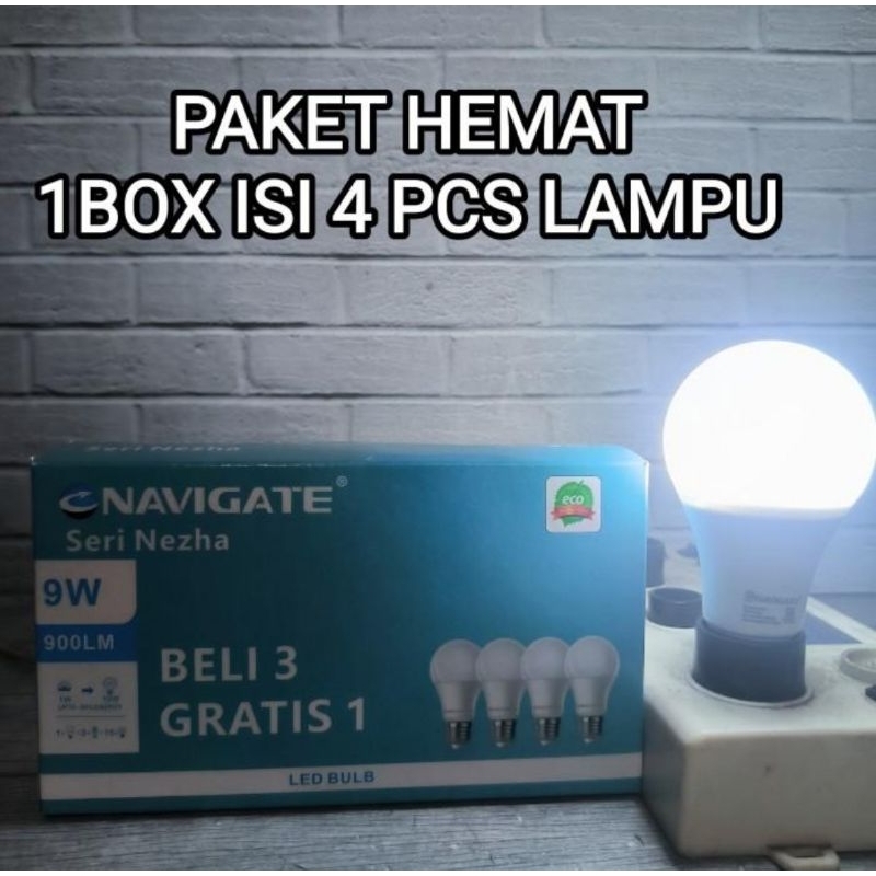 Navigate Paket Isi 4 Pcs Lampu Led Bulb 9W 12 Watt Cahaya Putih Sni
