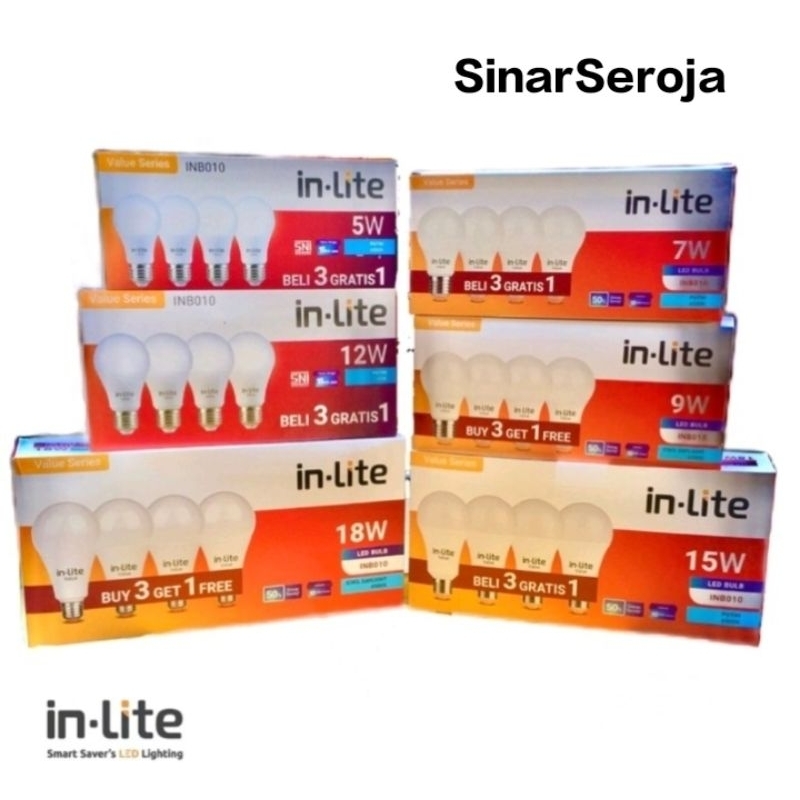 Lampu Inlite / In-Lite Led Value Inb010 Bohlam Murah 5W / 7W / 9W / 11W / 15W Paket Beli 3 Gratis 1 Warna Kuning / Putih