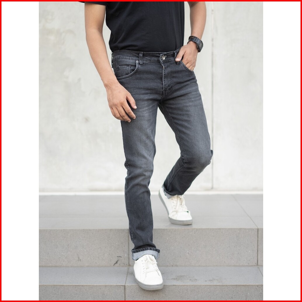 Hey Man Celana Jeans Denim Panjang Pria Slimfit Strech - Black Stonewash