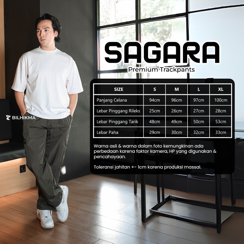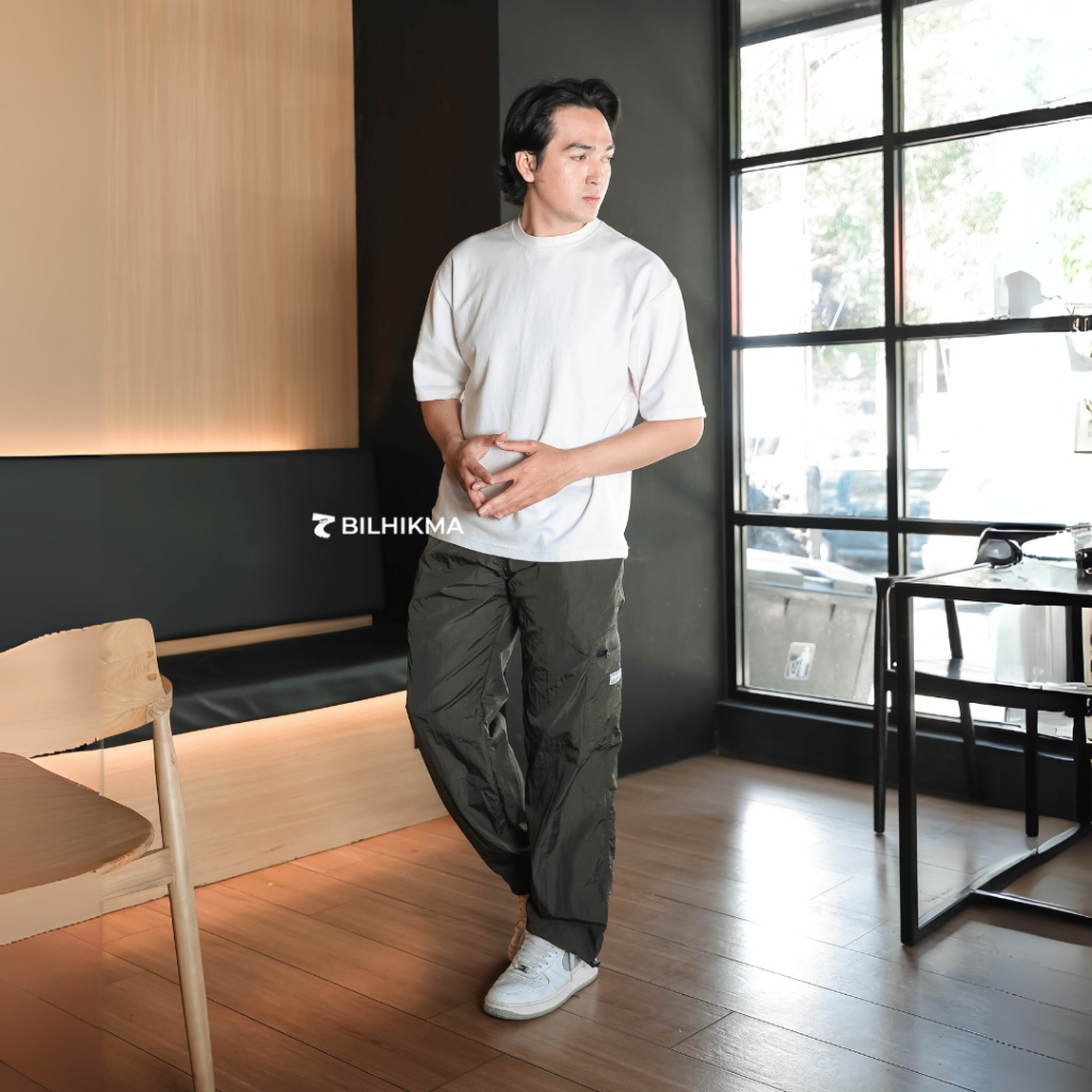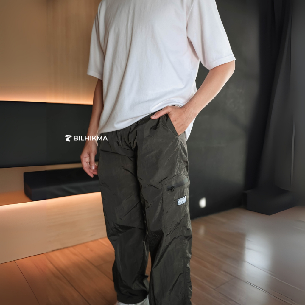 BILHIKMA Celana Cargo Pria Sagara Trackpants Bahan Nylon Parasut Celana untuk Santai & Outdoor