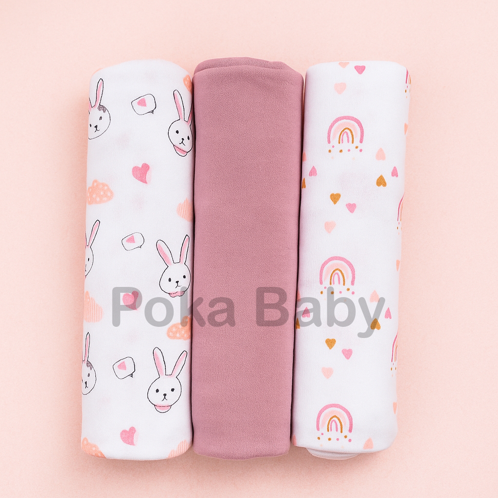 3pcs Bedong Bayi Pink Series POKA Selimut Pernel 90X110CM AK06