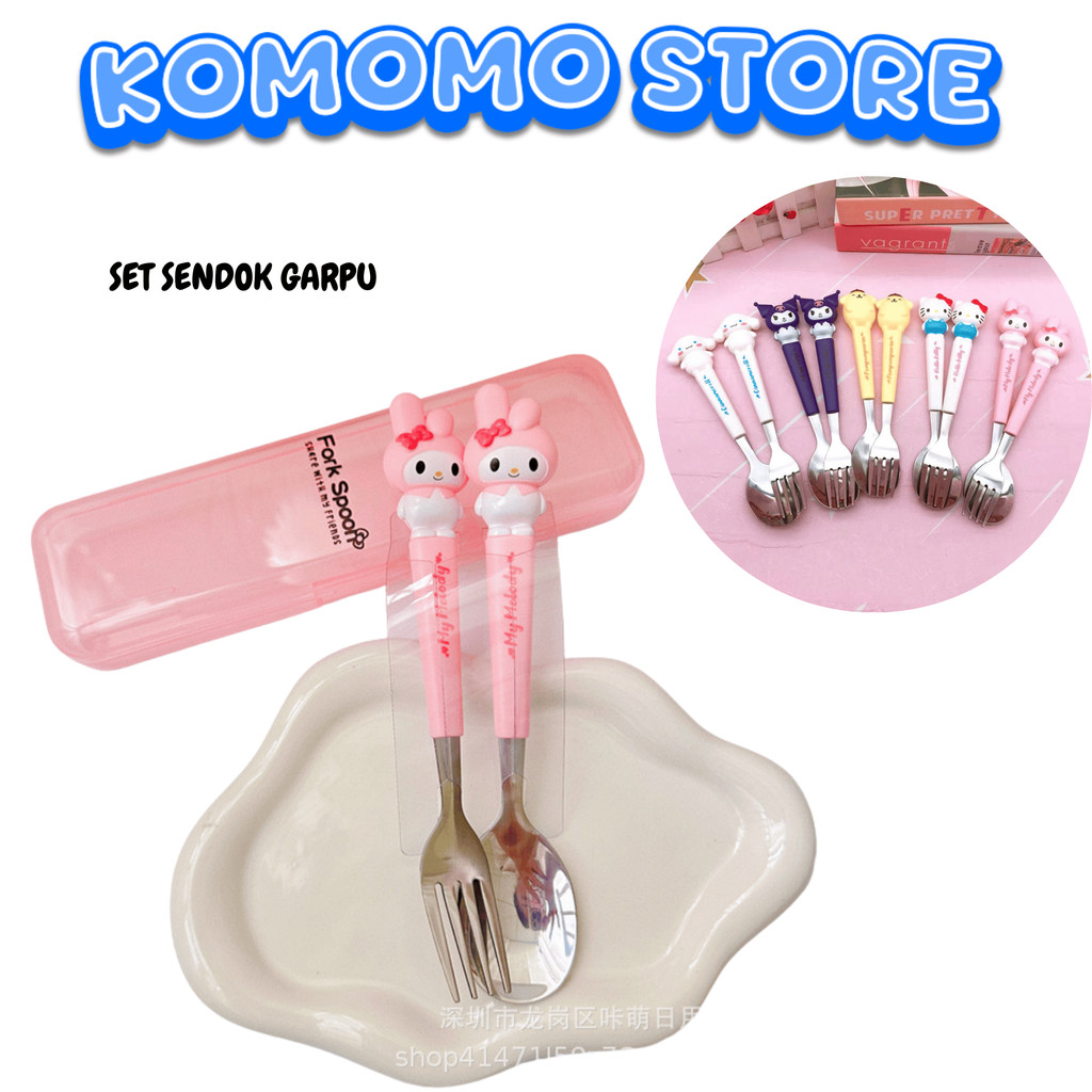 KMM Set Sendok Garpu H1028 Alat Makan Anak Karakter Sanrio Peralatan Makan Portable Stainless Steel