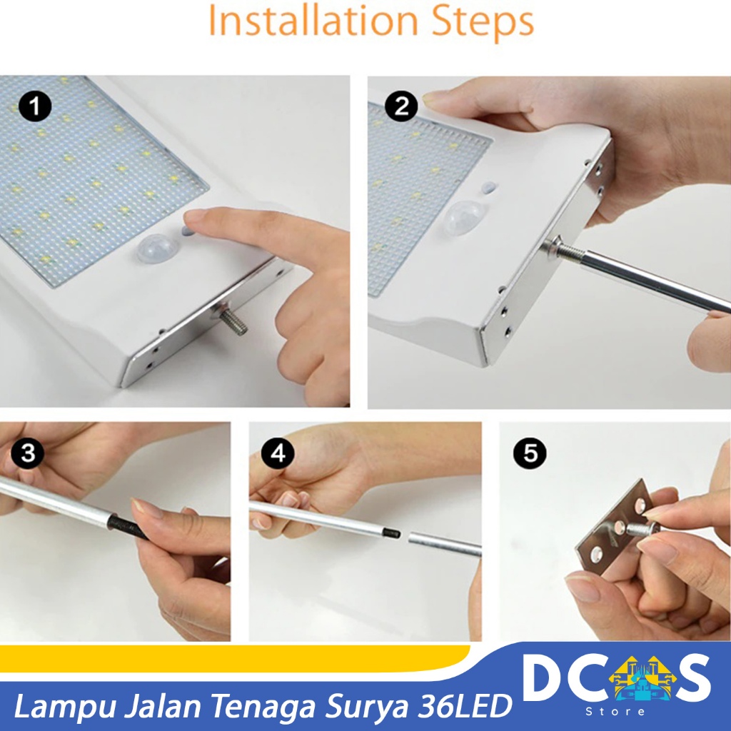 Lampu Jalan Solar Tenaga Surya Motion Sensor 36Led Lampu Dinding Taman + Pole (Tiang)