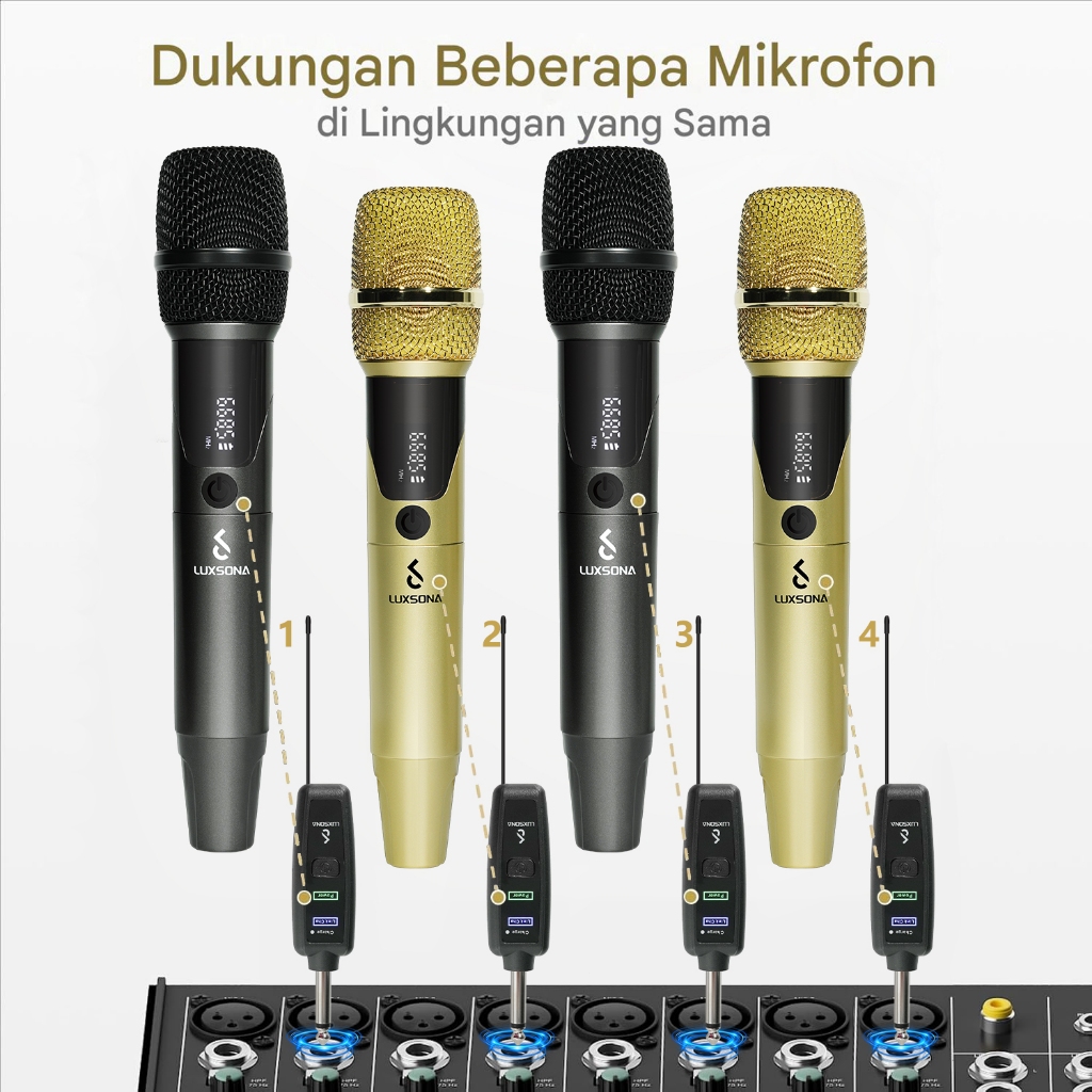 LUXSONA Mic Dual Wireless Microphone UHF display LED Charger Lock Frekuensi Bluetooth hand held Cordless Dynamic Mikropo