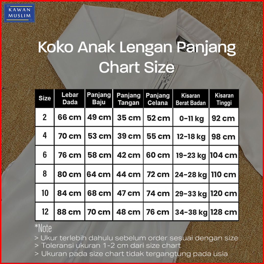 Kawan Muslim - Setelan Koko Anak Laki-laki Full Bordir Lengan Panjang Usia 1-12 Tahun Toyobo Terbaru