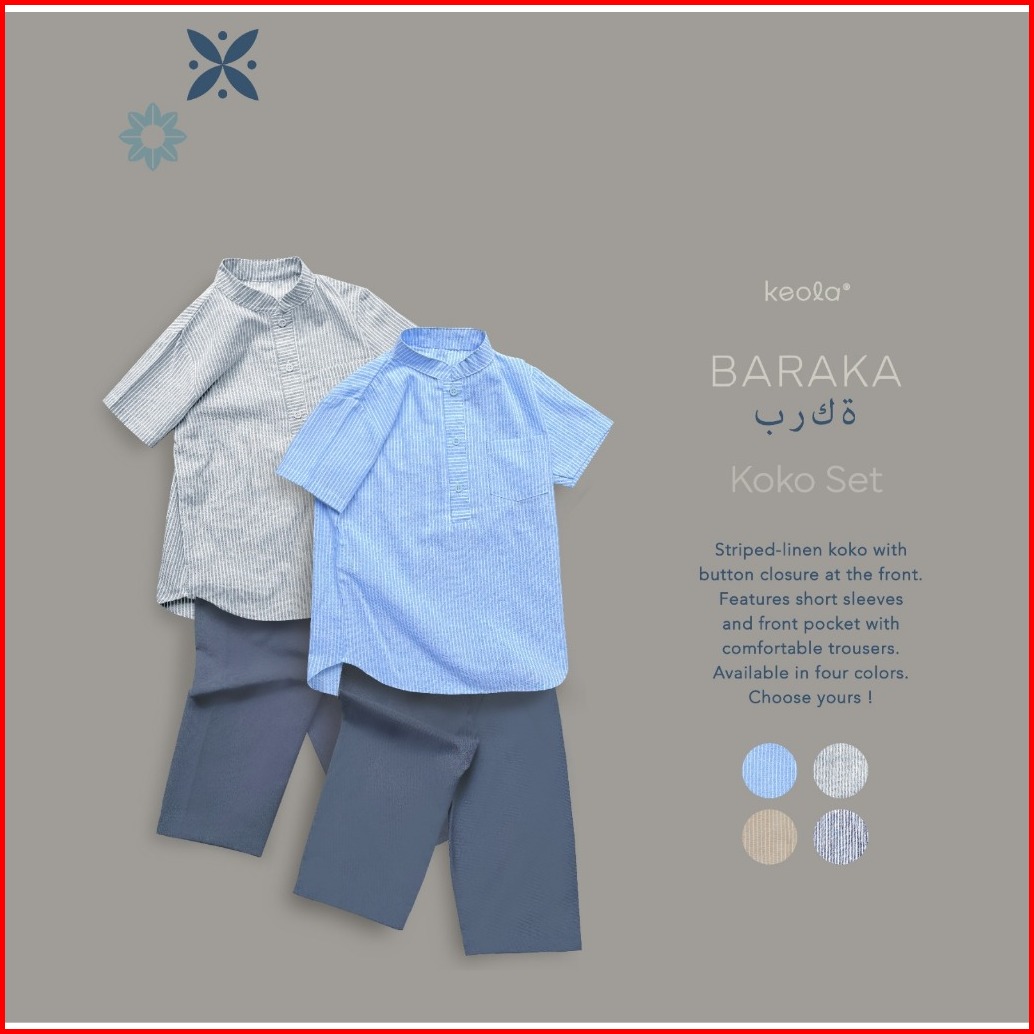 Keola - Setelan Koko Baraka Baju Koko Stripe Anak Ramadhan Setelan Muslim Koko Set Anak Usia 1 - 11 Tahun