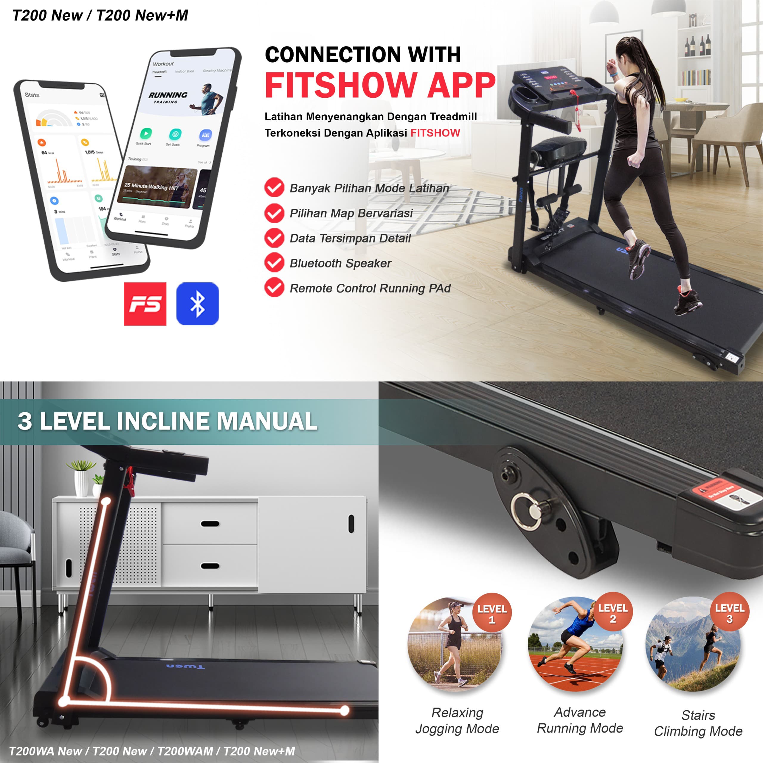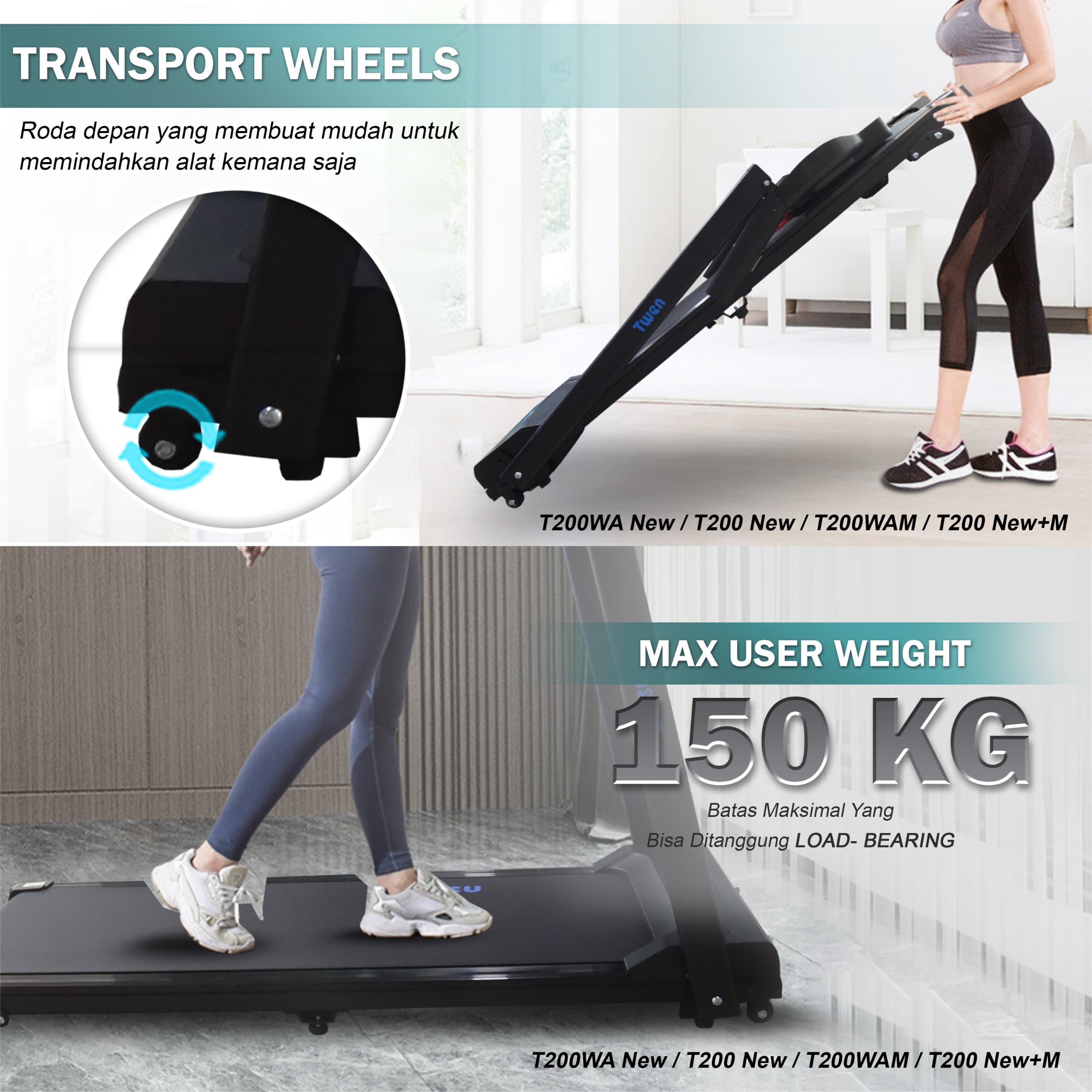 TWEN T200WA new T200 new + M T200WAM Treadmil Listrik Treadmill Portable Treadmill Multifungsi Treadmil Lipat Treadmill