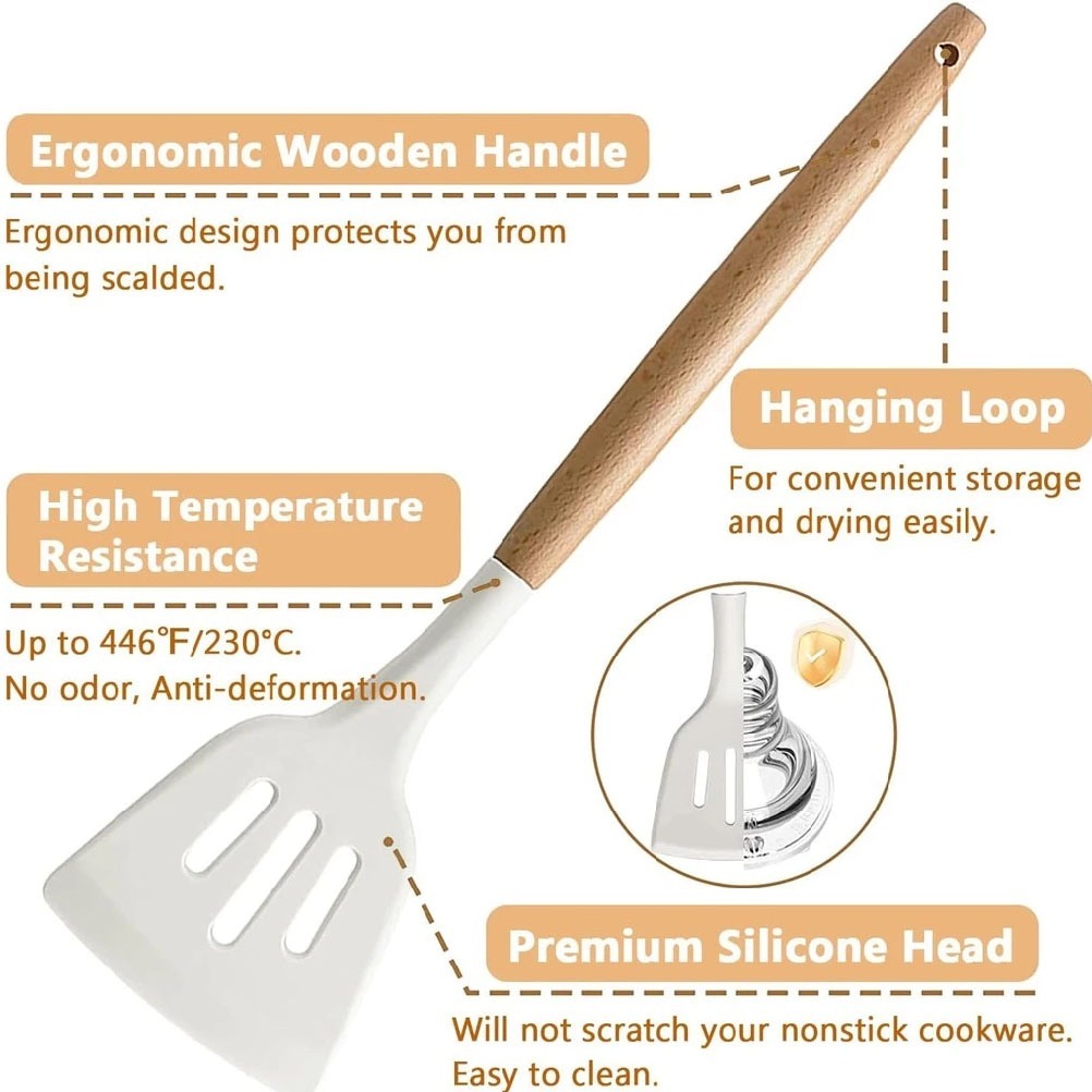 T-SEA 3pcs Alat Masak Silicone Cooking Utensil/spatula Silikon Tahan Panas/spatula Set Silikon Tahan Panas/spatula Jib/a