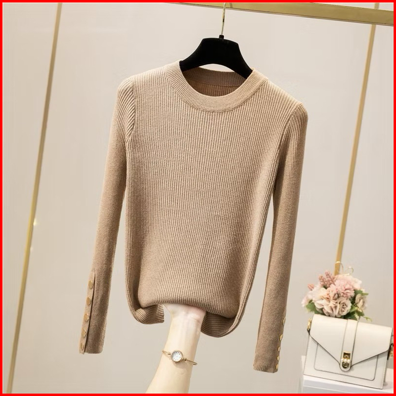 Manset Rajut Wanita Kancing Lengan Panjang Atasan Rajut Turtleneck Wanita Lengan Panjang Premium Korean Style Inner Mans