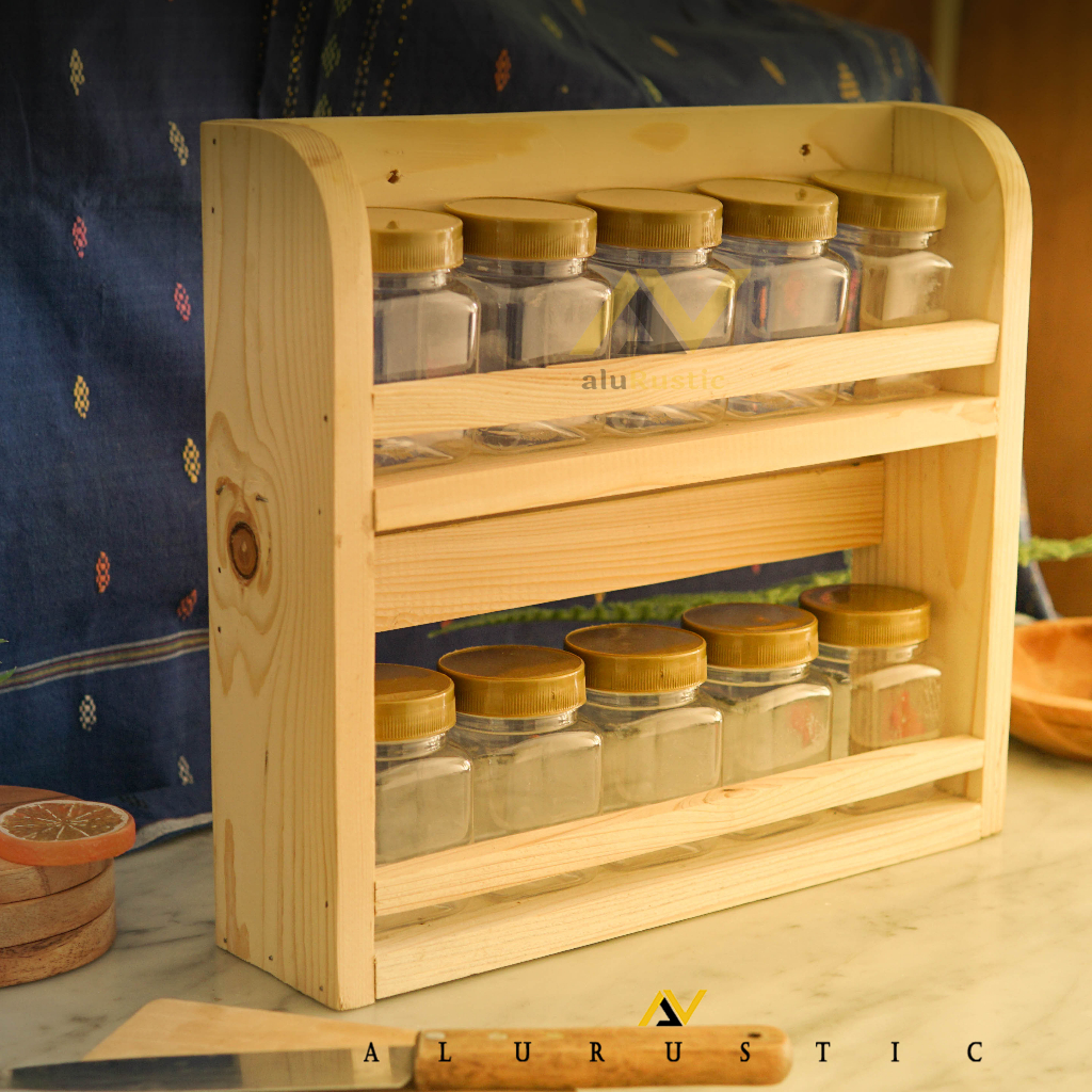 TEMPAT BUMBU KAYU 2 TINGKAT 10 TOPLES / RAK KAYU 2 SUSUN / RAK GANTUNG / TEMPAT BUMBU SERBAGUNA PERABOT