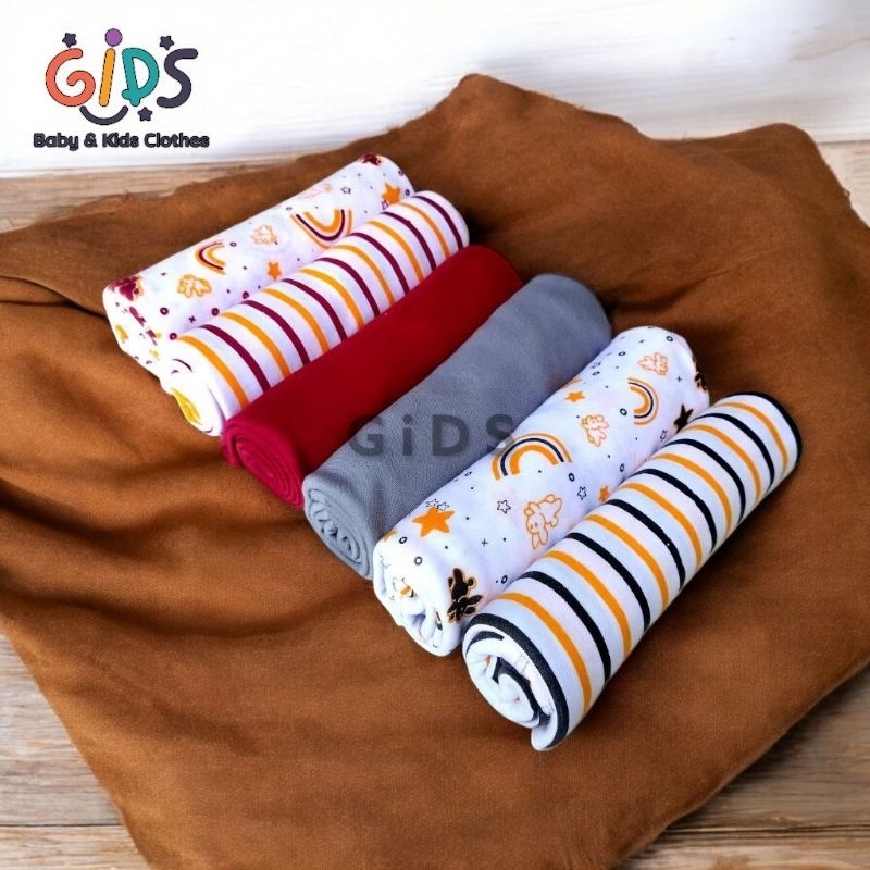 GiDS 6 Pcs Bedong Bayi Jumbo 110x90 cm Perlengkapan Bayi Baru Lahir Selimut Pernel Bedong Kain Abu
