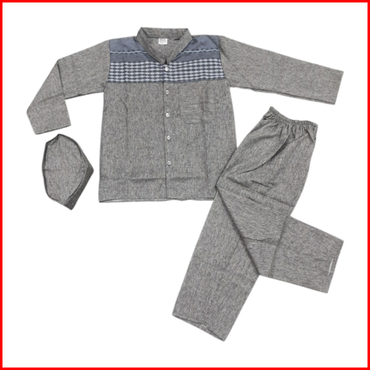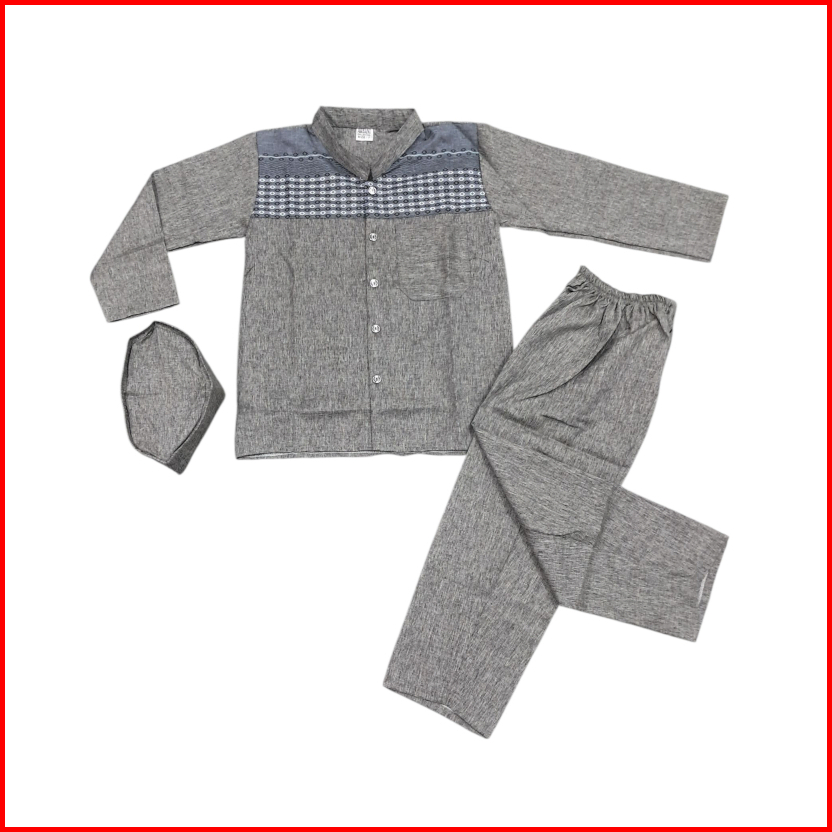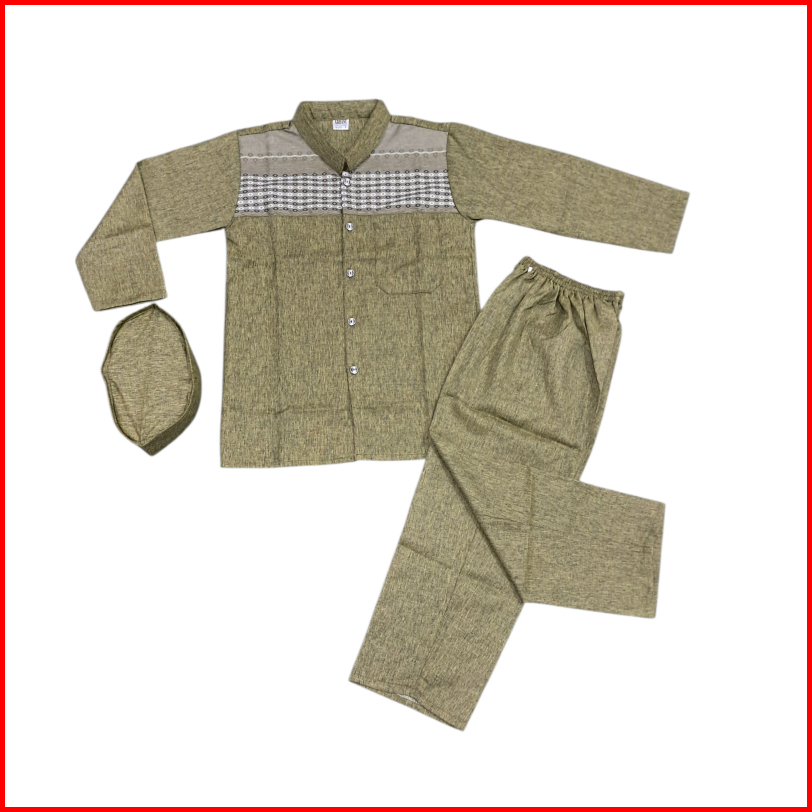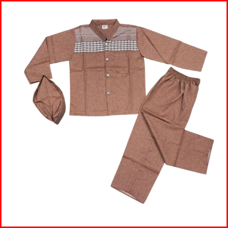 Setelan Baju Koko Anak Lengan Panjang Madinah Usia 4-12 Tahun Ful Kancing