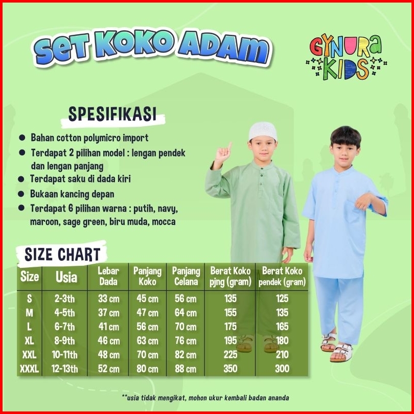 Setelan Koko Anak Adam Gynurakids Lengan Pendek - Baju Koko Adam Lengan Panjang