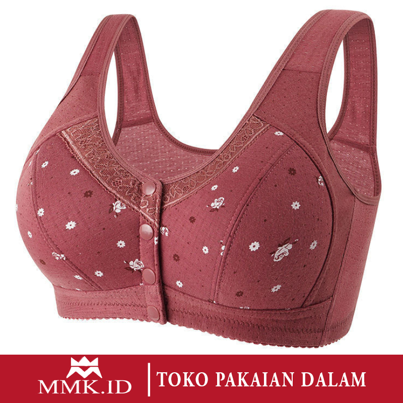 Bra Wanita Dewasa Tanpa Busa Pengait Gesper Depan Tanpa Kawat Bh Jumbo Motif Bunga Bahan Elastis