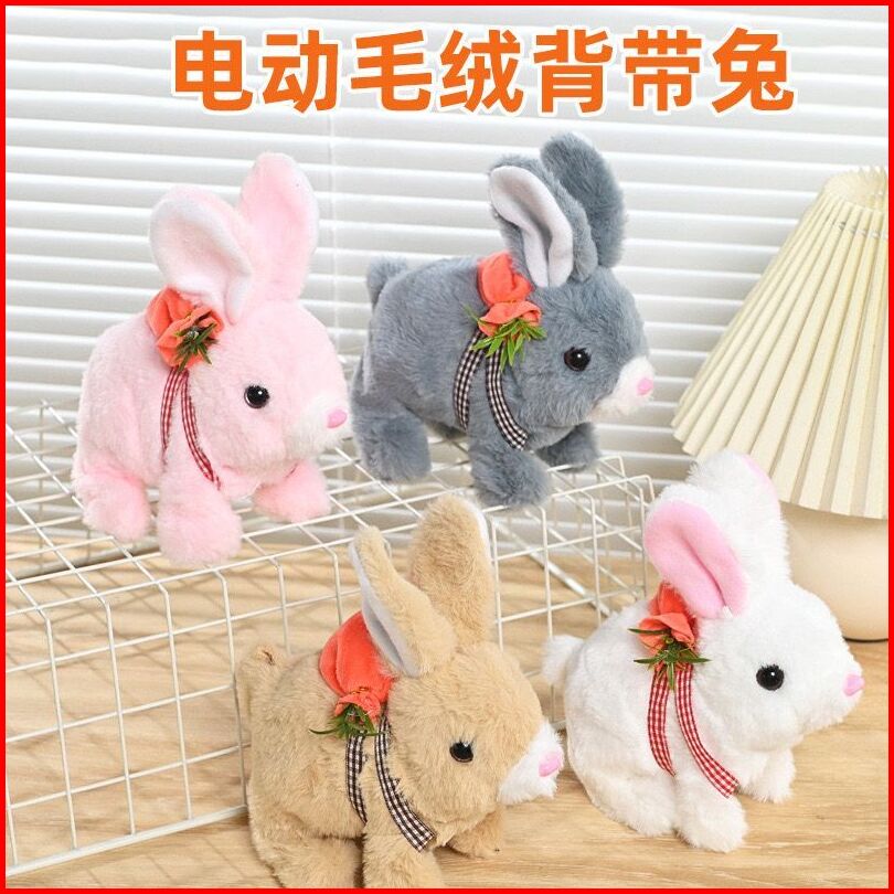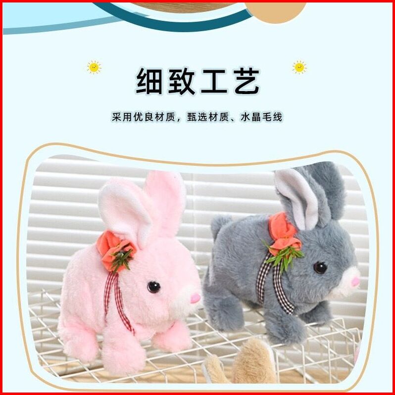 Simulasi Mainan Mewah Elektronik Kelinci Lucu Bisa Berjalan Dan Melompat Hidung Dan Telinga Melompat
