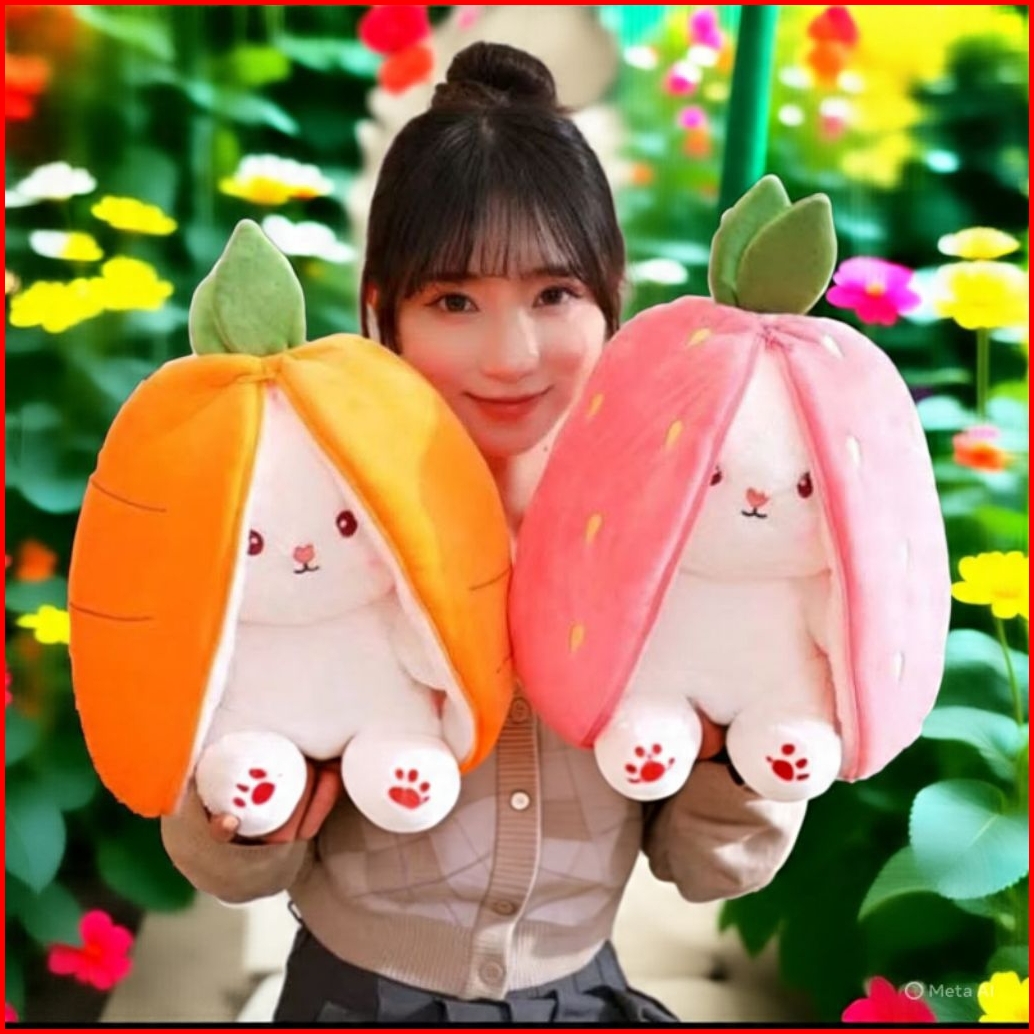 Boneka Kelinci Strawberry Wortel Flip Resesible Ukuran 30cm Bahan Halus