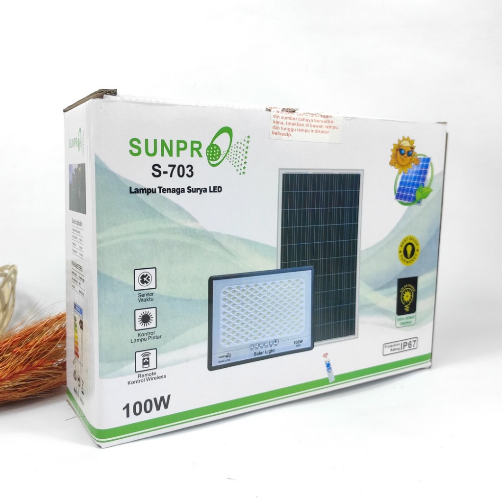 Lampu Led Tenaga Surya 100 Watt Merk Sunpro S - 703 / Solar Panel Ip67 Hemat Energi