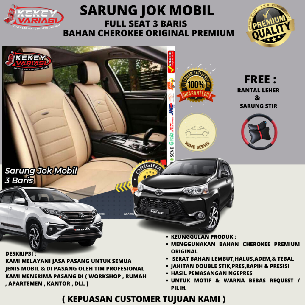 SARUNGJOK mobil 3 baris bahan cherokee Avanza Xenia Rush Terios Ertiga XL 7 Inova Ribond calia dll