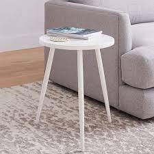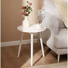 Meja minimalis bulat bundar hias sudut pojok aesthetic samping sofa ruang tamu teras santai kopi besar kecil scandinavia