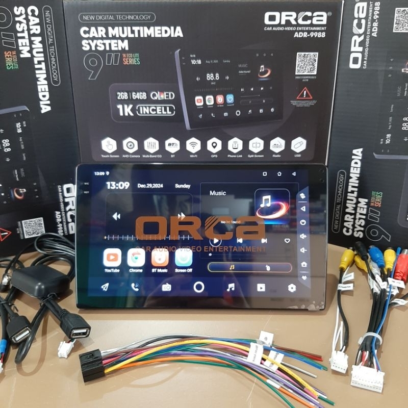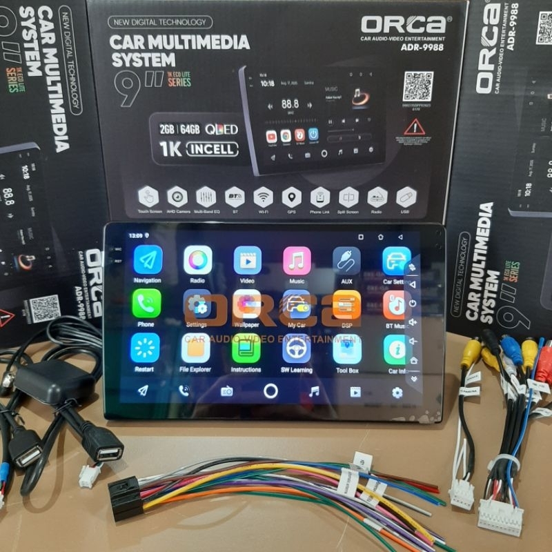 HEAD UNIT ANDROID 9 INCH ORCA RAM 2/64 GB - INCELL BLACK SCREEN - ANDROID AUTO - CARPLAY