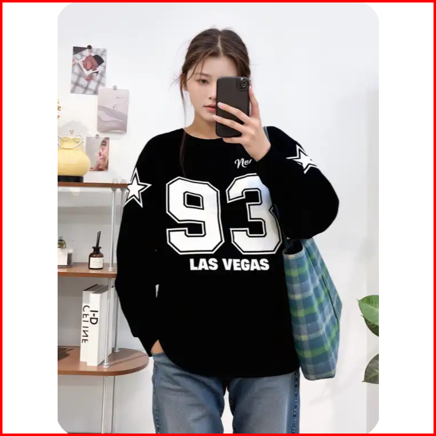 Las Vegas 93 Sweater Wanita Star Crew Neck Oblong Basic