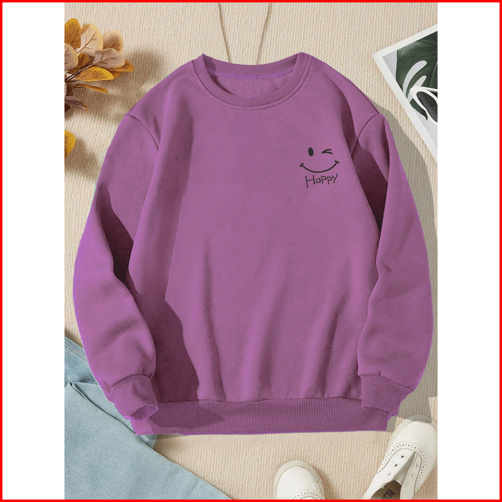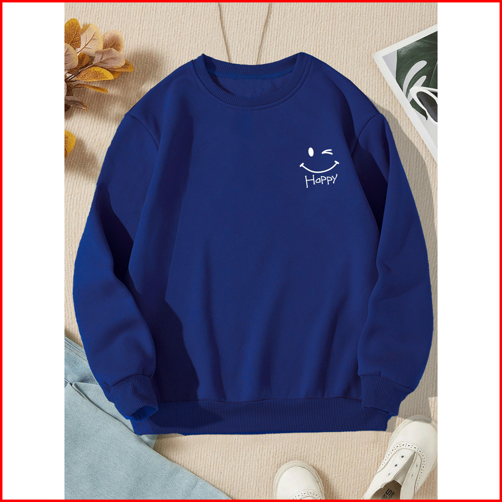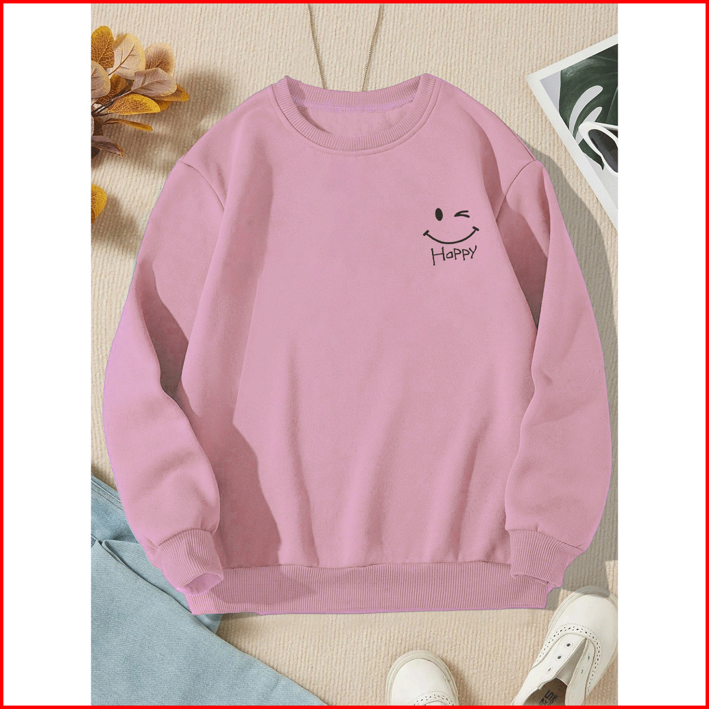 Sweater Basic Wanita Happy Switer Crewneck Oblong Remaja Dewasa Sweater Cewe Flecce Murah Korean Style Hitam Coksu Dusty