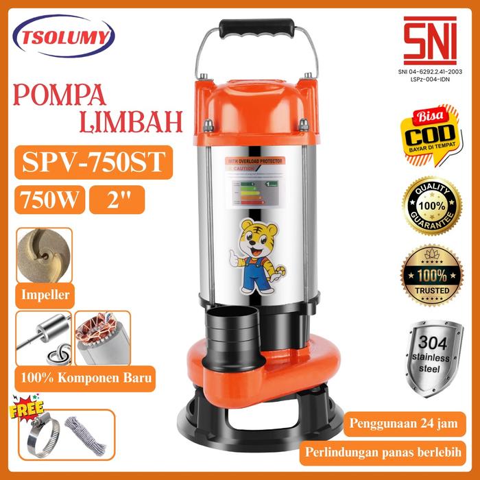Tsolumy Pompa Celup Air Kotor SPV-750ST ORANGE Stainless Steel Submersible Pump 2inch Pompa Sawah