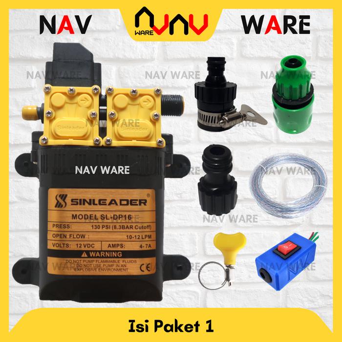 Paket Lengkap Booster Penguat Air Mesin Cuci Pompa Sinleader Dual Double Pump DC 12V 130psi +