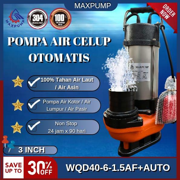 MAXPUMP Pompa Celup Air Kotor WQD40-6-1.5AF 3inch Otomatis 2Hp Pompa Kolam lkan Pompa Celup / Kuras