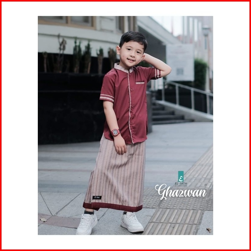 Setelan Baju Koko Anak Laki-laki Sarung Celana Ghazwan Original By El-fath Koko Lengan Pendek Usia 2-12 Thn