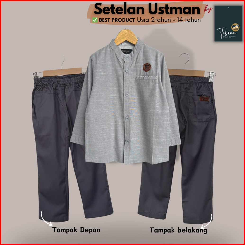 Setelan Kemeja Koko Anak Laki Laki Sampai Remaja Lengan Panjang Seri Ustman Usia 2 Hingga 16 Tahun
