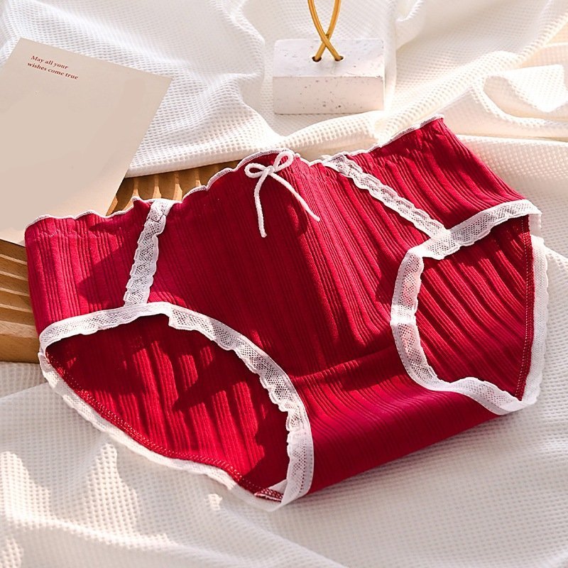 CD2143 Celana Dalam Red Wanita Lucu CD Style Jepang Renda Pita Merah Fashion Korean