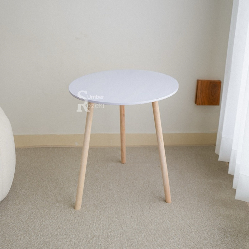 Meja Ruang Tamu Minimalis Model Bulat Aesthetic Industrial Kayu Sudut | Samping Modern Terbaru Termurah