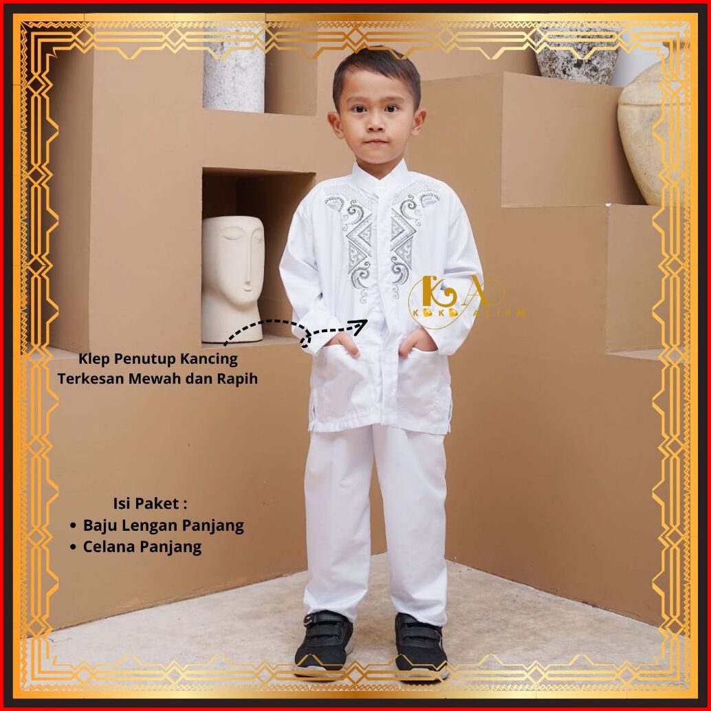 Baju Setelan Koko Anak Klasik Muslim Laki-laki Warna Putih Lengan Panjang Untuk Paud Tk Sd Mi
