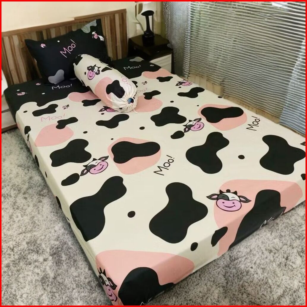 Sprei Viral Moo Moo Sapi Bahan Adem Lembut Nyaman Di Pakai Free Sarban Sargul
