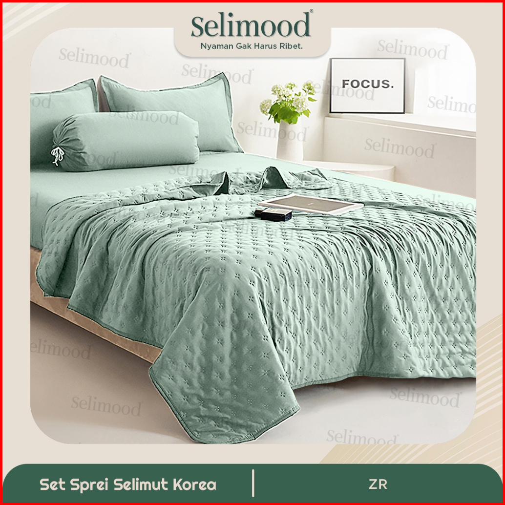 Selimood- Set Bedcover Seprei Sarung Bantal Guling Motif Polos Bahan Microtex Dacron
