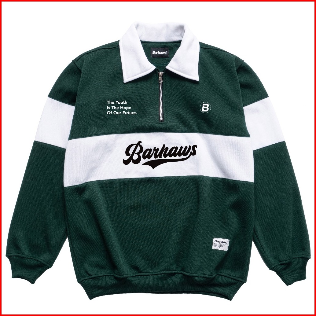 Barhaws - Sweater Half Zipper Rugby Kombinasi Hijau