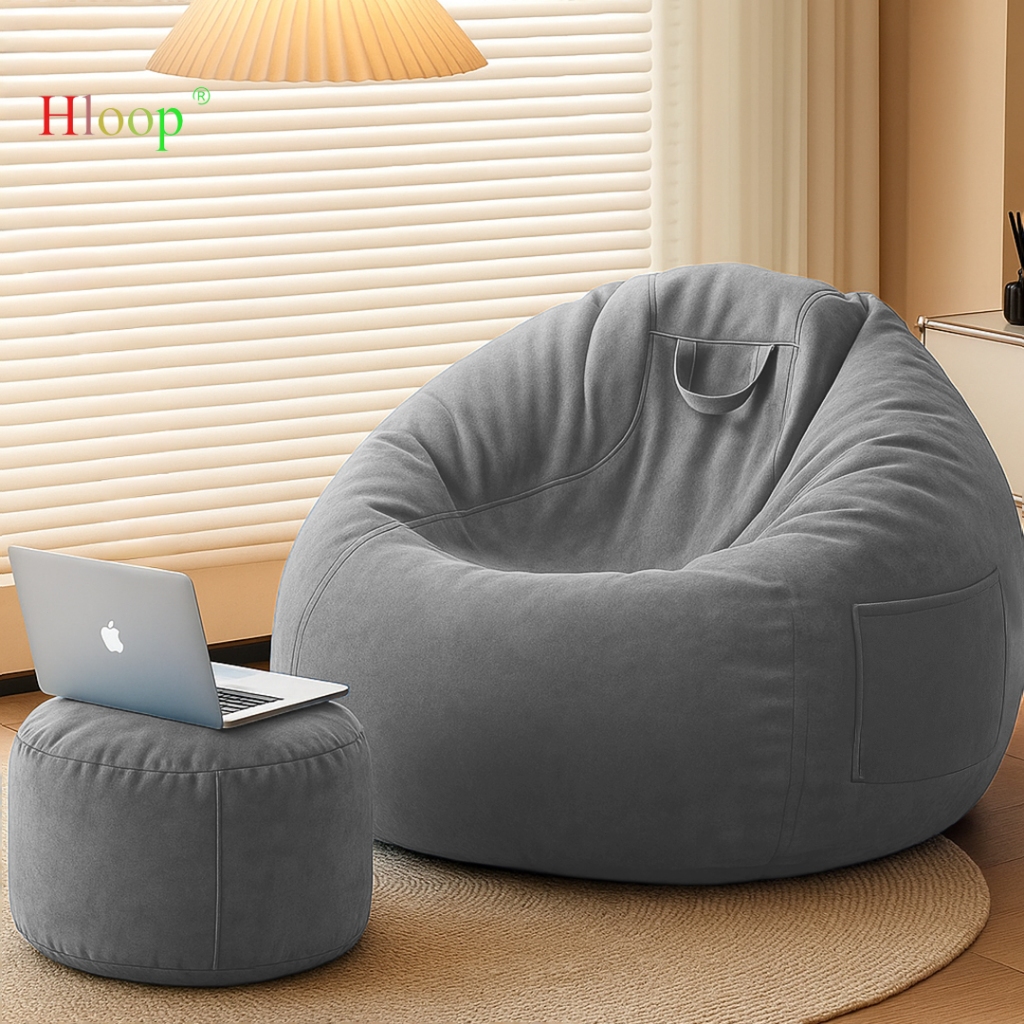 Hloop Bean Bag Aesthetic Round Comfy Polyester Sofa 2in1 Sofa/Kursi Ruang Tamu